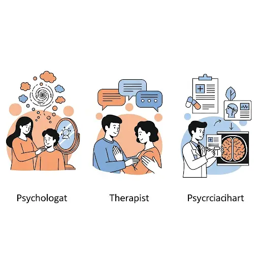 👉 Il peut exercer en cabinet ou en milieu hospitalier, et propose souvent un cadre analytique ou cognitivo-comportemental.